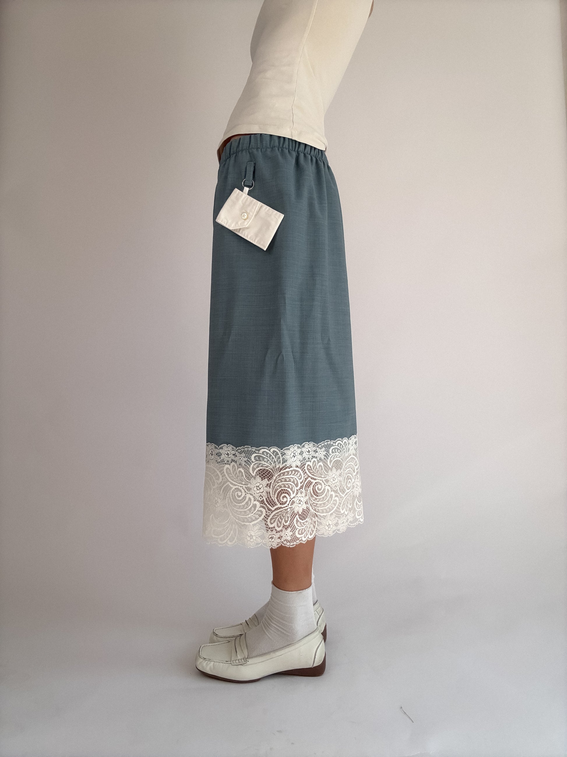 Basketball shorts turquoise upcyclé, sublimé de dentelle de Calais, plus fine que les excuses de ton ex... Détail de zinzin : sa petite pochette porte-clé unique à chaque pièce, comme toi bébé.