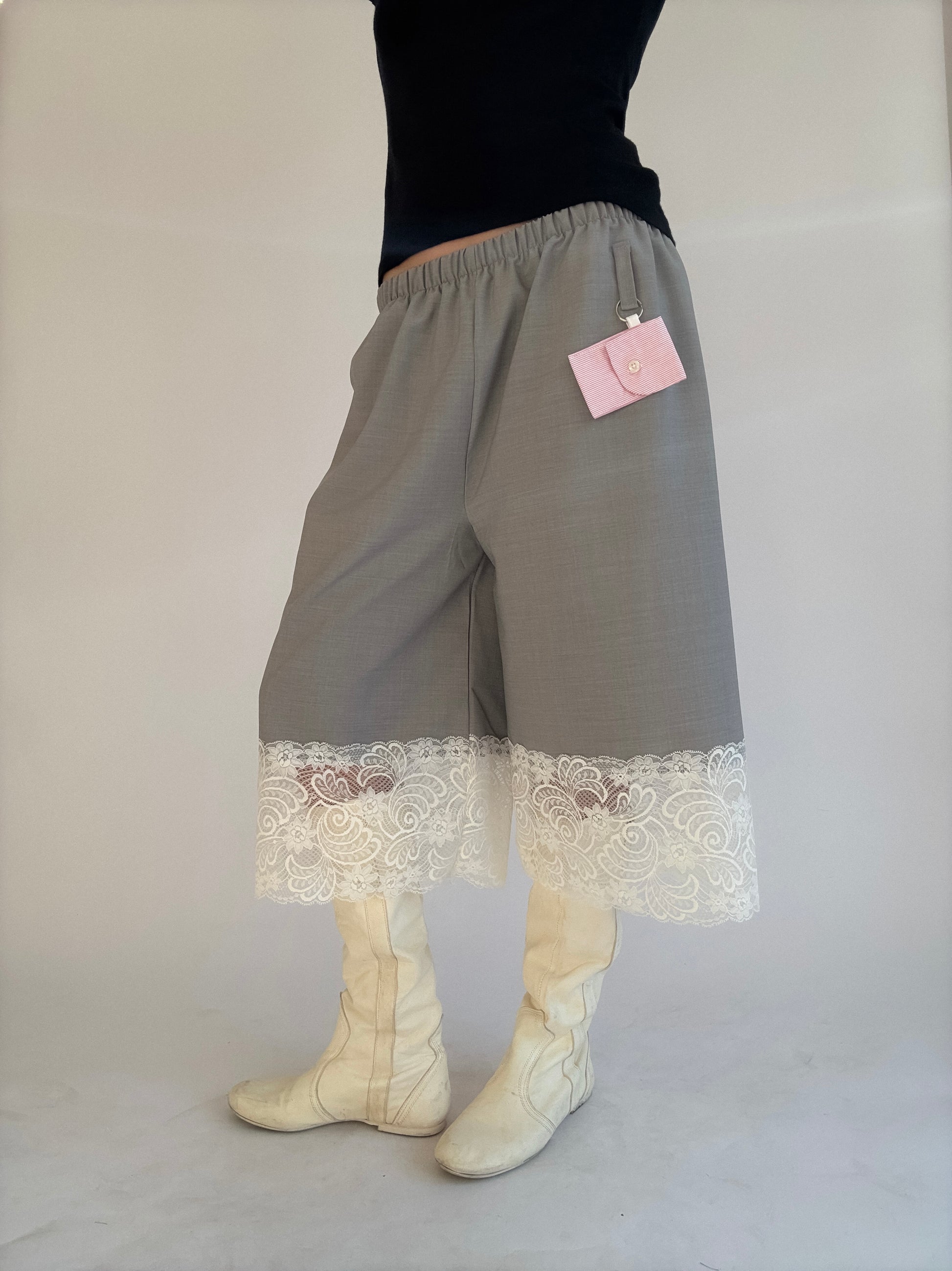 Basketball shorts upcyclé, sublimé de dentelle de Calais, plus fine que les excuses de ton ex... Détail de zinzin : sa petite pochette porte-clé unique à chaque pièce, comme toi bébé.