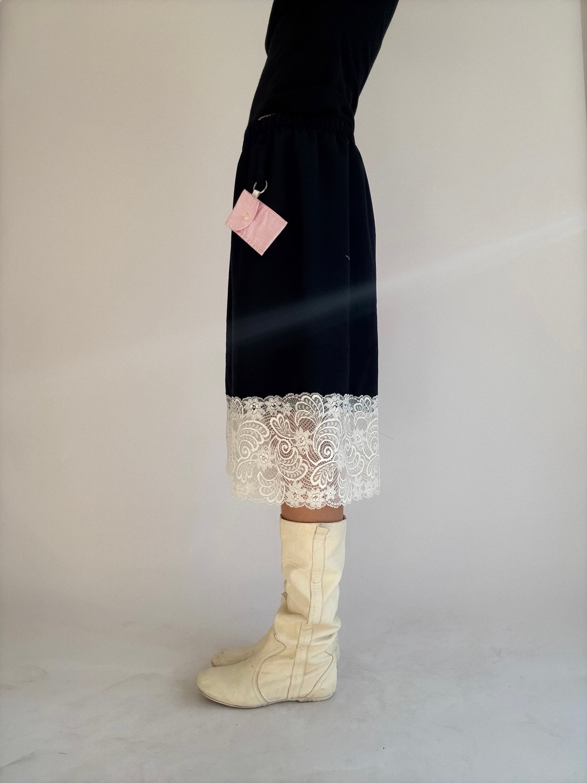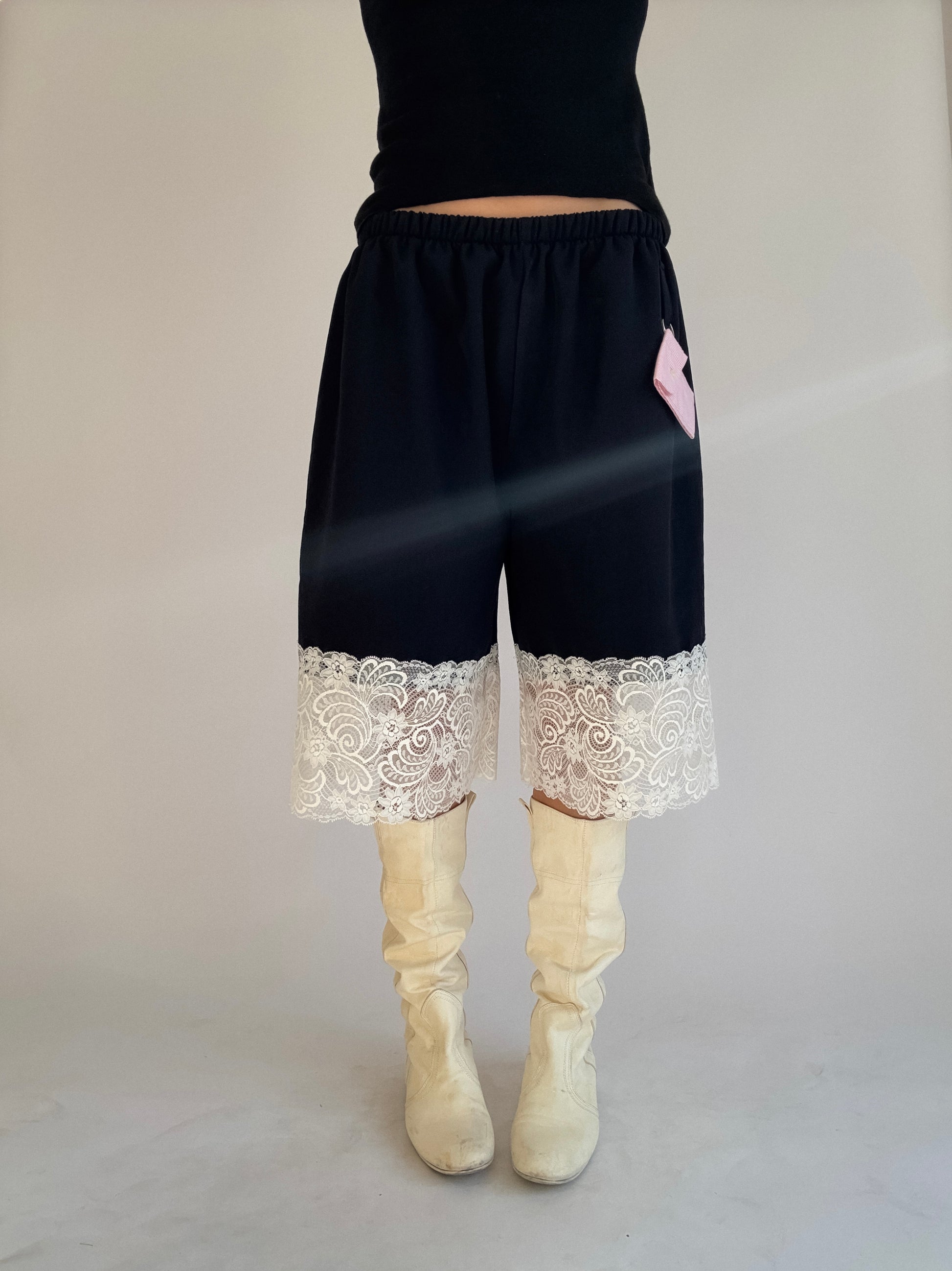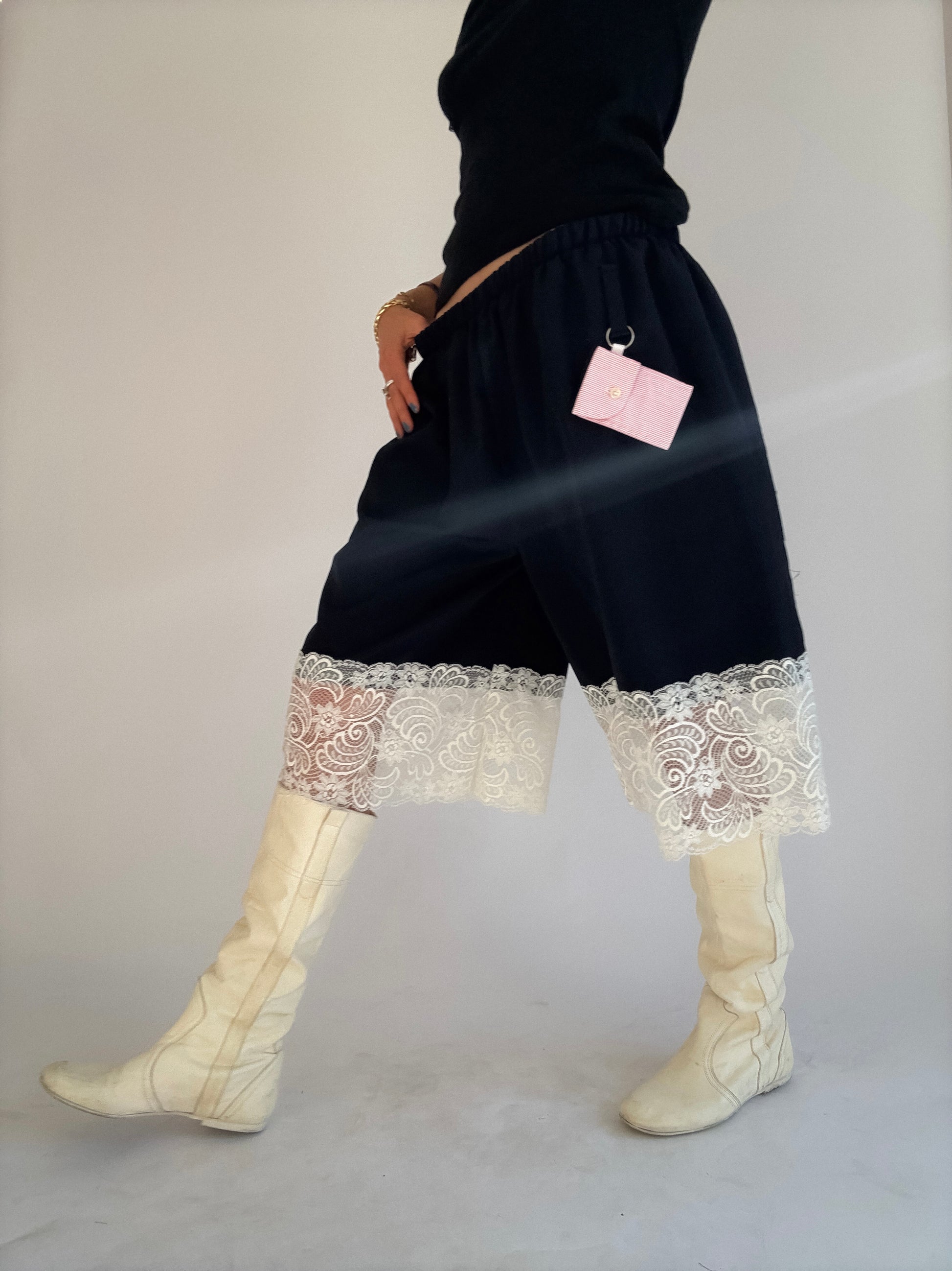 Basketball shorts upcyclé, sublimé de dentelle de Calais, plus fine que les excuses de ton ex... Détail de zinzin : sa petite pochette porte-clé unique à chaque pièce, comme toi bébé.