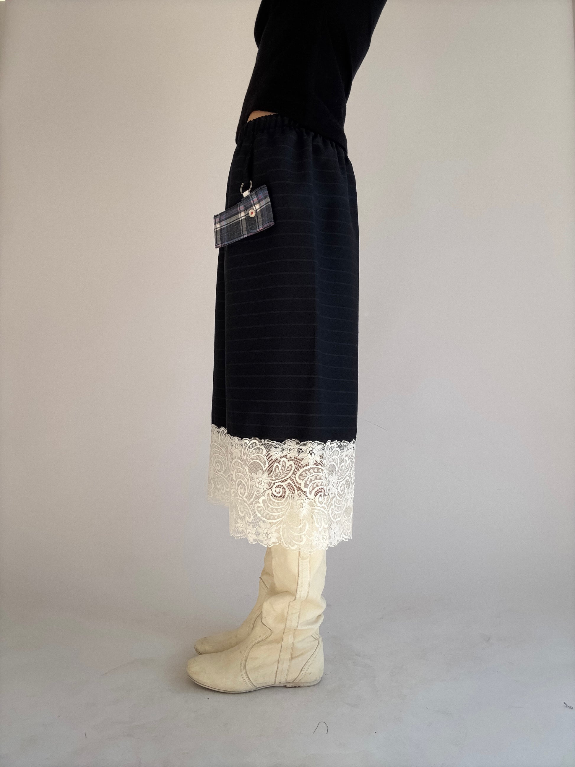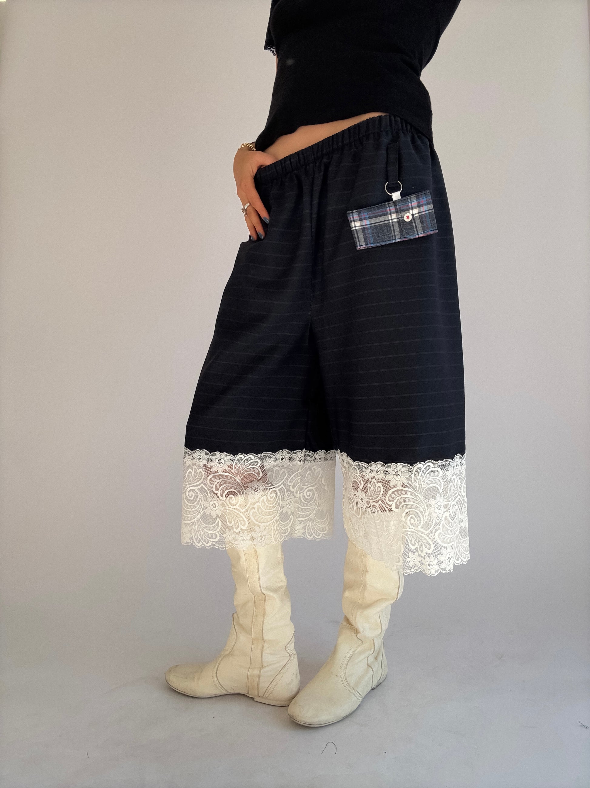 Basketball shorts upcyclé, sublimé de dentelle de Calais, plus fine que les excuses de ton ex... Détail de zinzin : sa petite pochette porte-clé unique à chaque pièce, comme toi bébé.