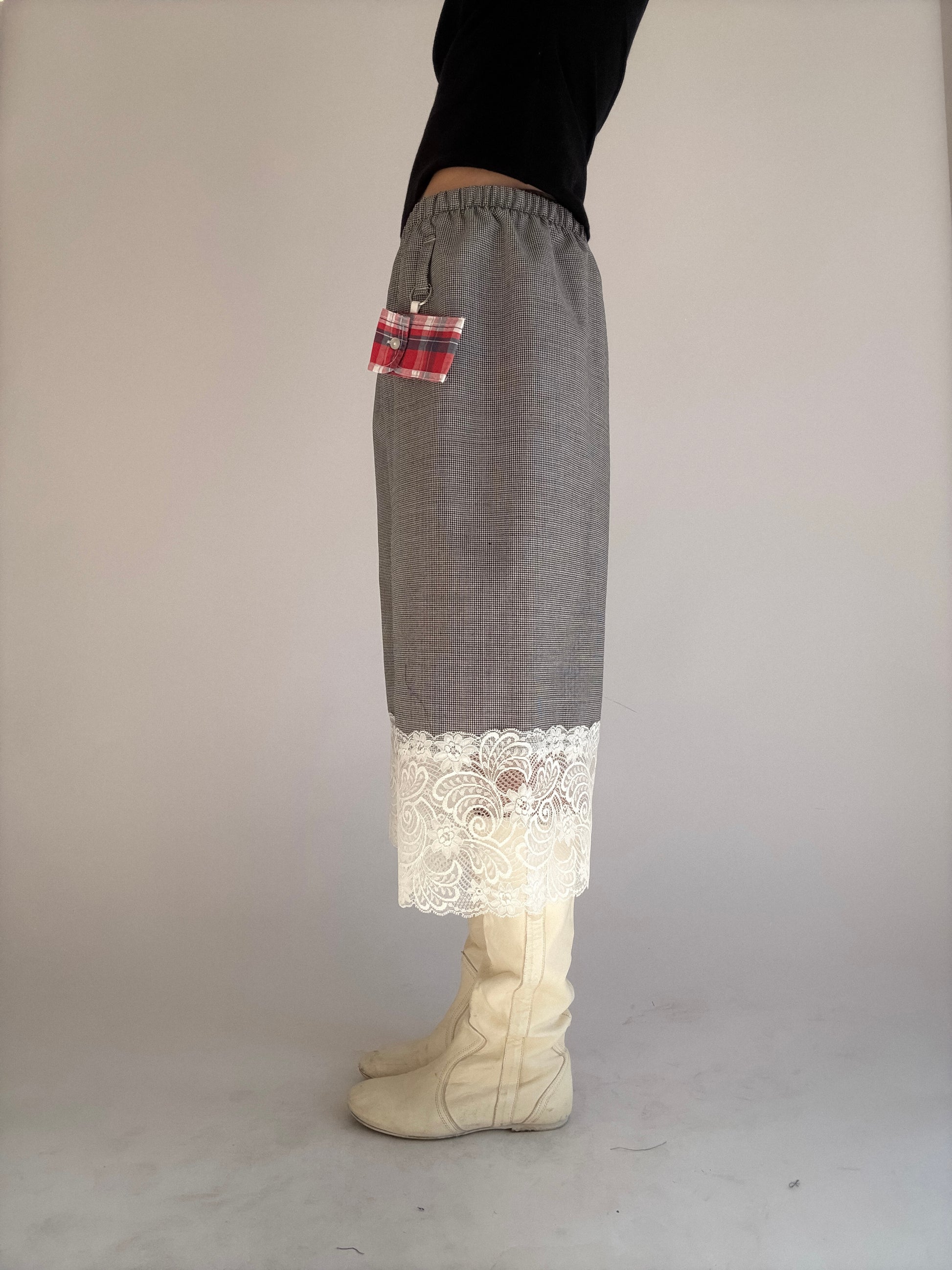 Basketball shorts upcyclé, sublimé de dentelle de Calais, plus fine que les excuses de ton ex... Détail de zinzin : sa petite pochette porte-clé unique à chaque pièce, comme toi bébé.