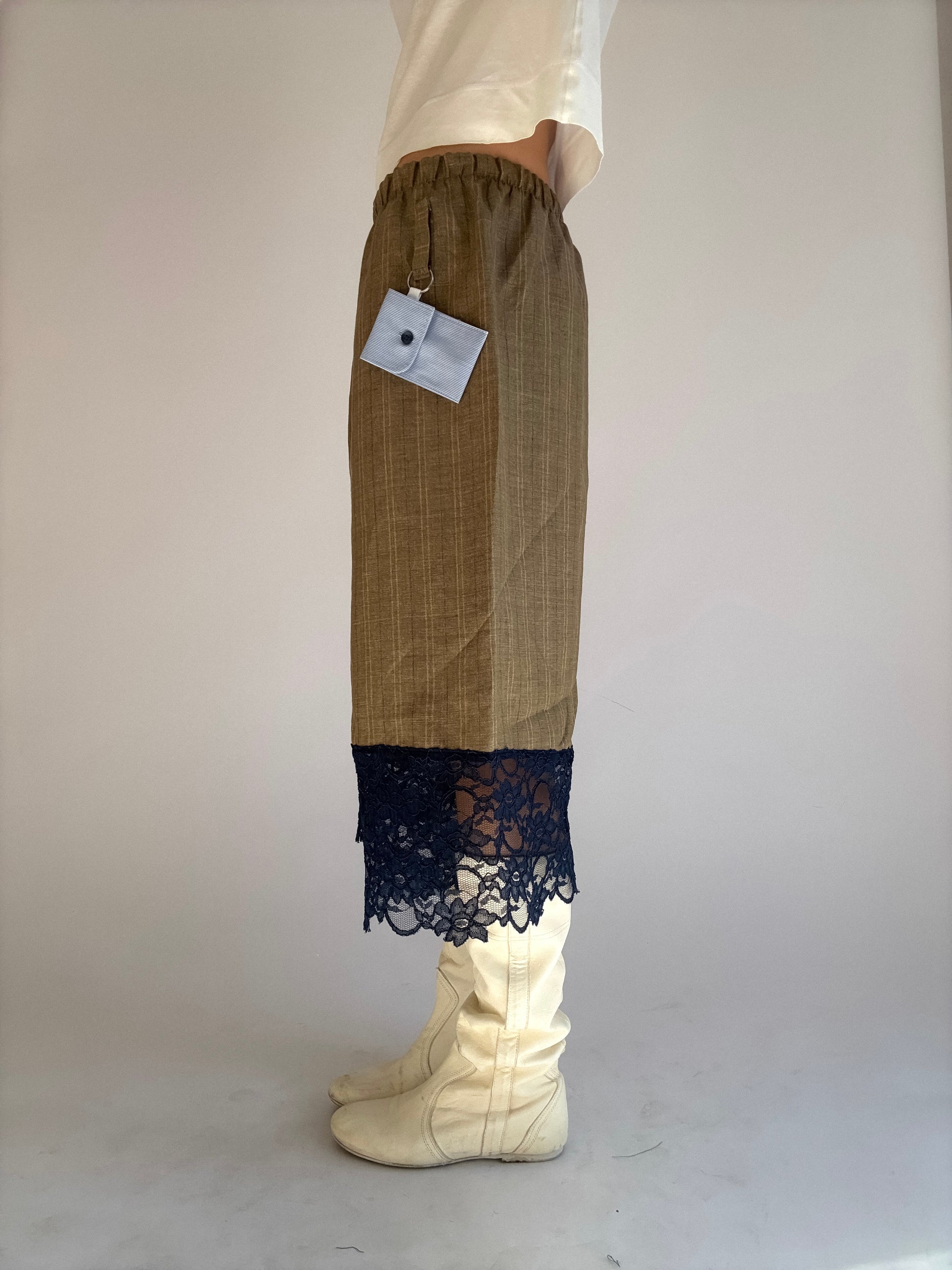 Basketball shorts upcyclé, sublimé de dentelle de Calais, plus fine que les excuses de ton ex... Détail de zinzin : sa petite pochette porte-clé unique à chaque pièce, comme toi bébé.