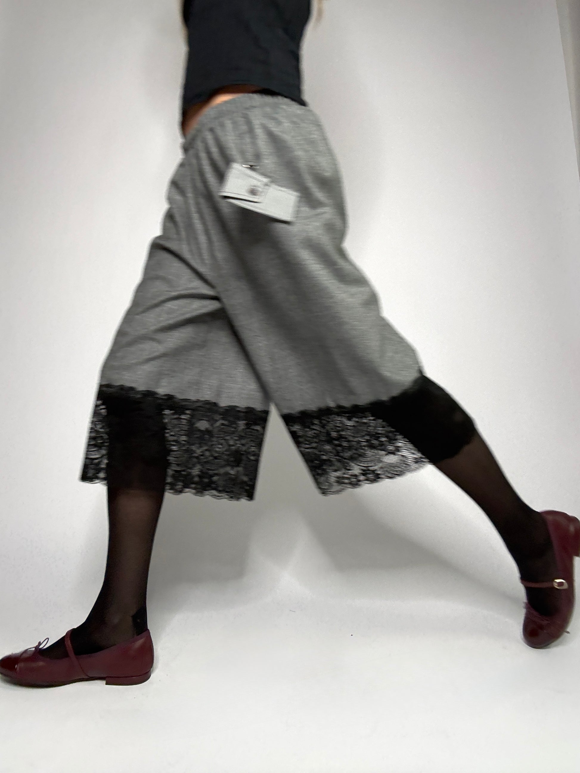 Basketball shorts upcyclé, sublimé de dentelle de Calais, plus fine que les excuses de ton ex... Détail de zinzin : sa petite pochette porte-clé unique à chaque pièce, comme toi bébé.