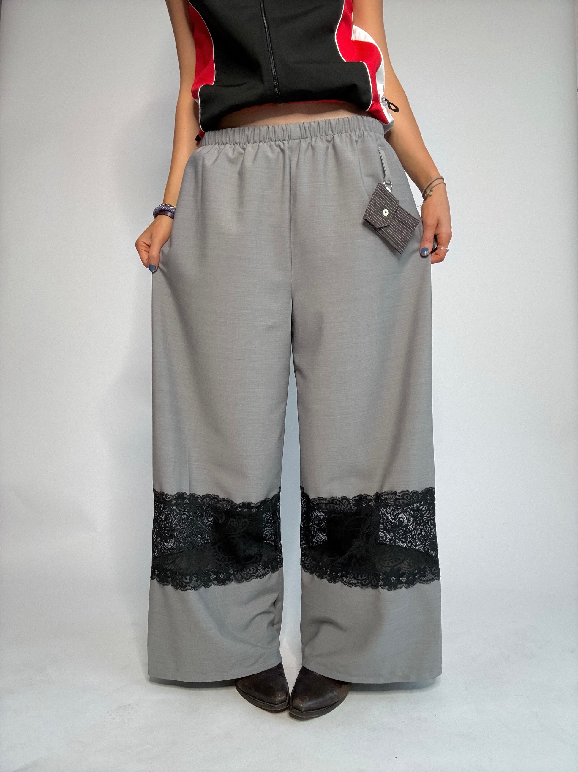 Pantalon upcyclé, sublimé de dentelle de Calais, plus fine que les excuses de ton ex... Détail de zinzin: sa petite pochette porte-clé, unique à chaque pièce, pour y glisser tes petits secrets.