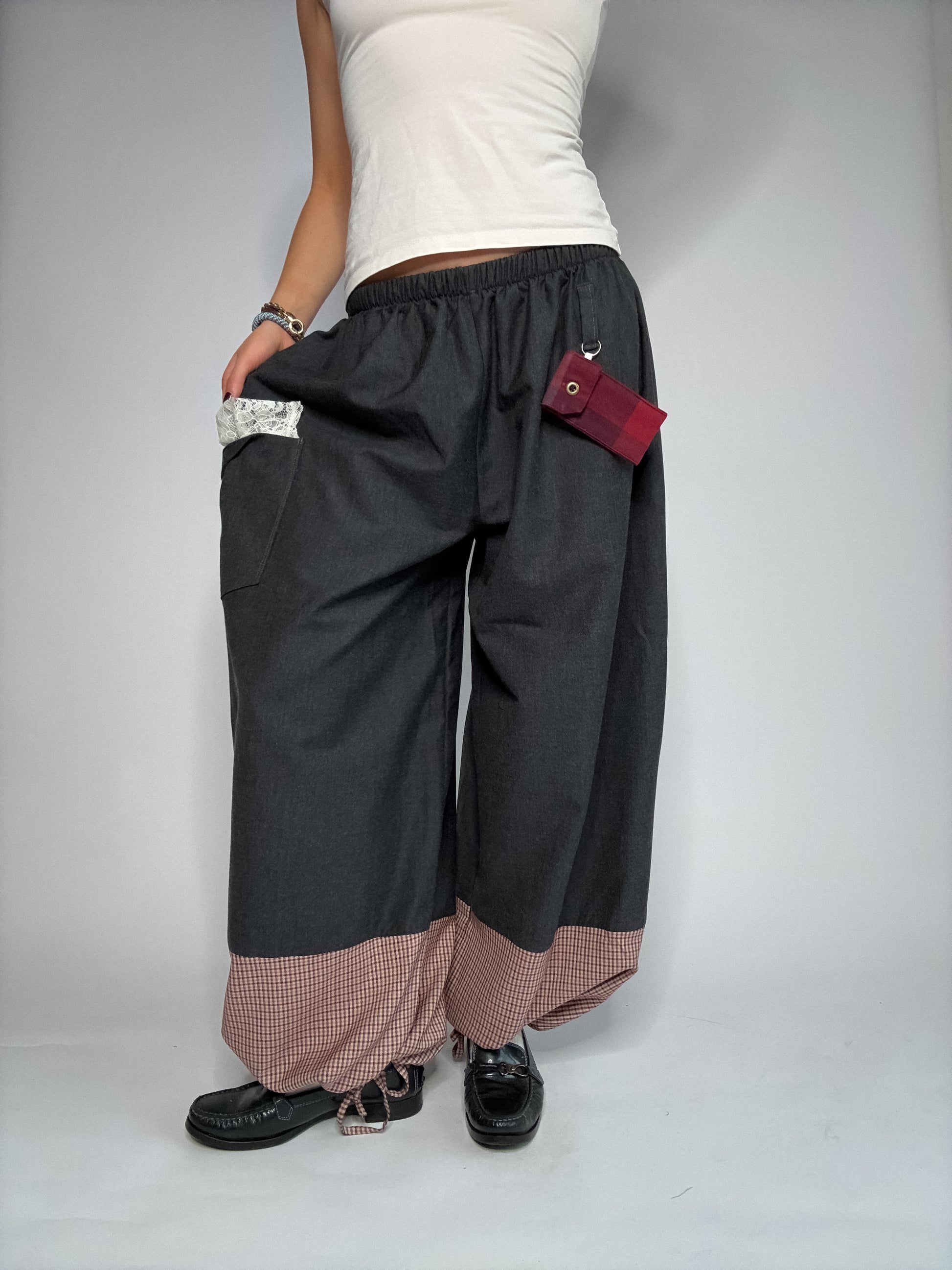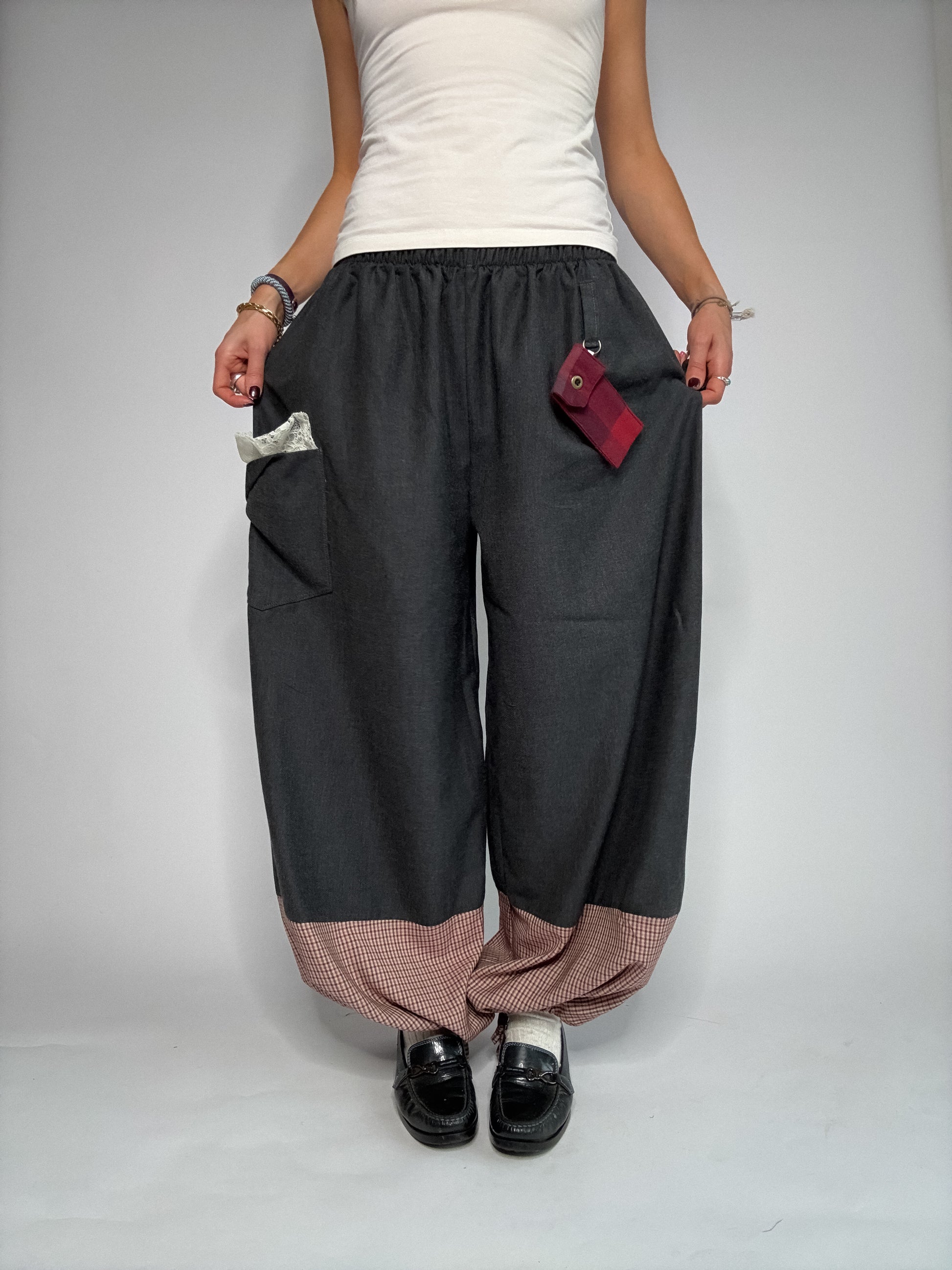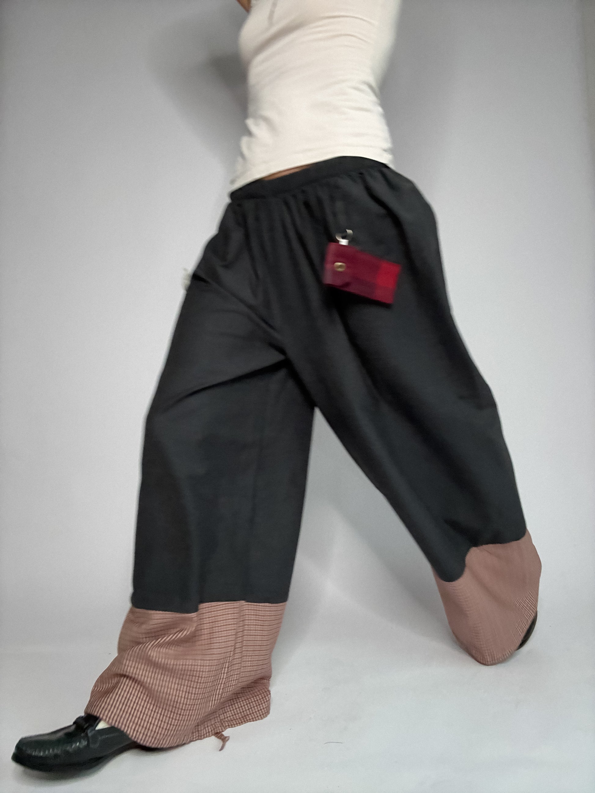 Pantalon upcyclé, boule ou évasé ? c’est vous qui décidez. Confectionné à partir de stocks dormants de maisons de luxe. Du caractère : poche asymétrique faite main, bouton vintage, mouchoir en dentelle qui dépasse… clin d’œil à ton grand-père enrhumé avec élégance.