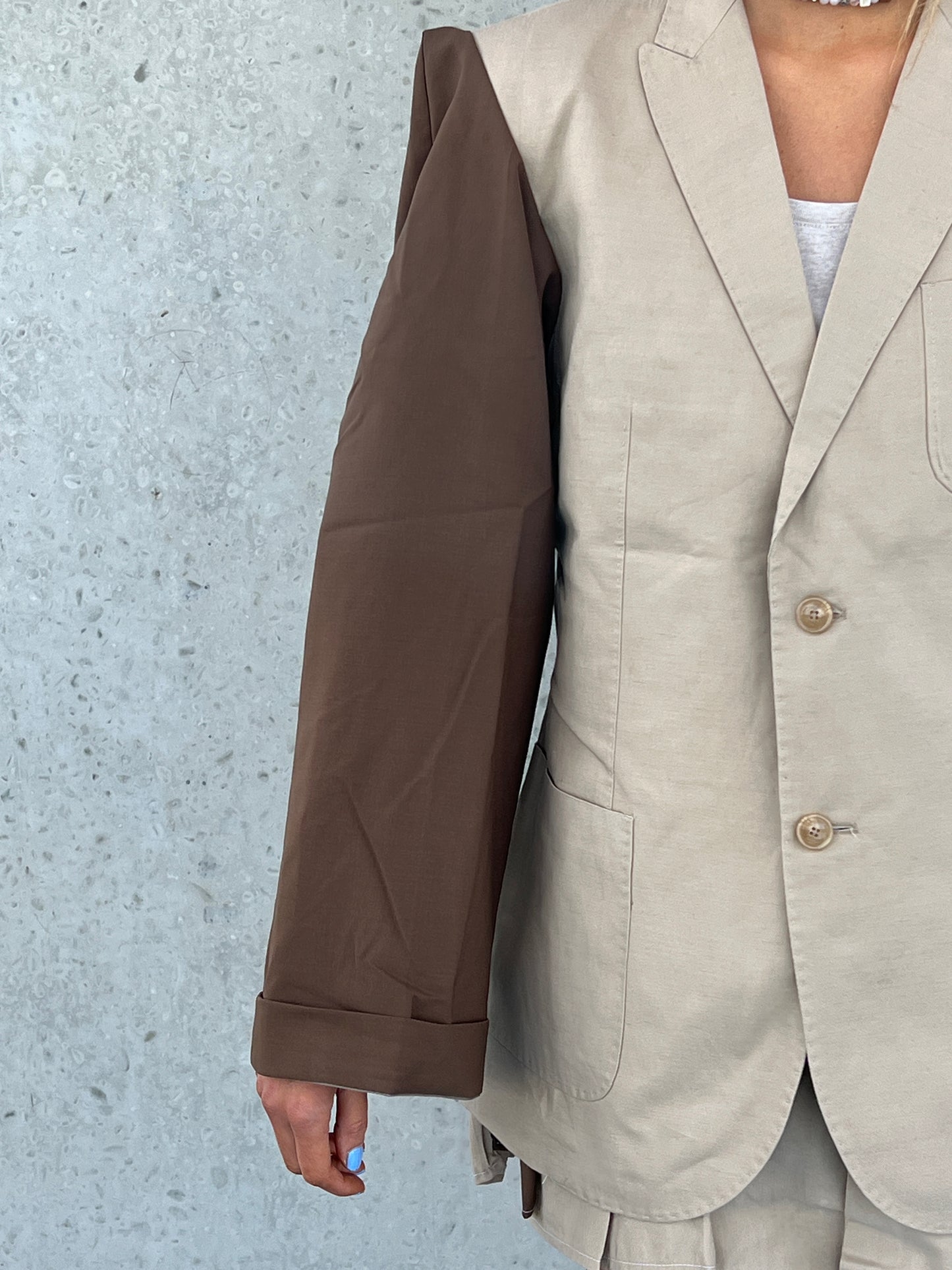 Lavage à sec, ou à froid pour les produits upcyclés en laine, à partir d’une veste de costume, ou d’un pantalon de costume.